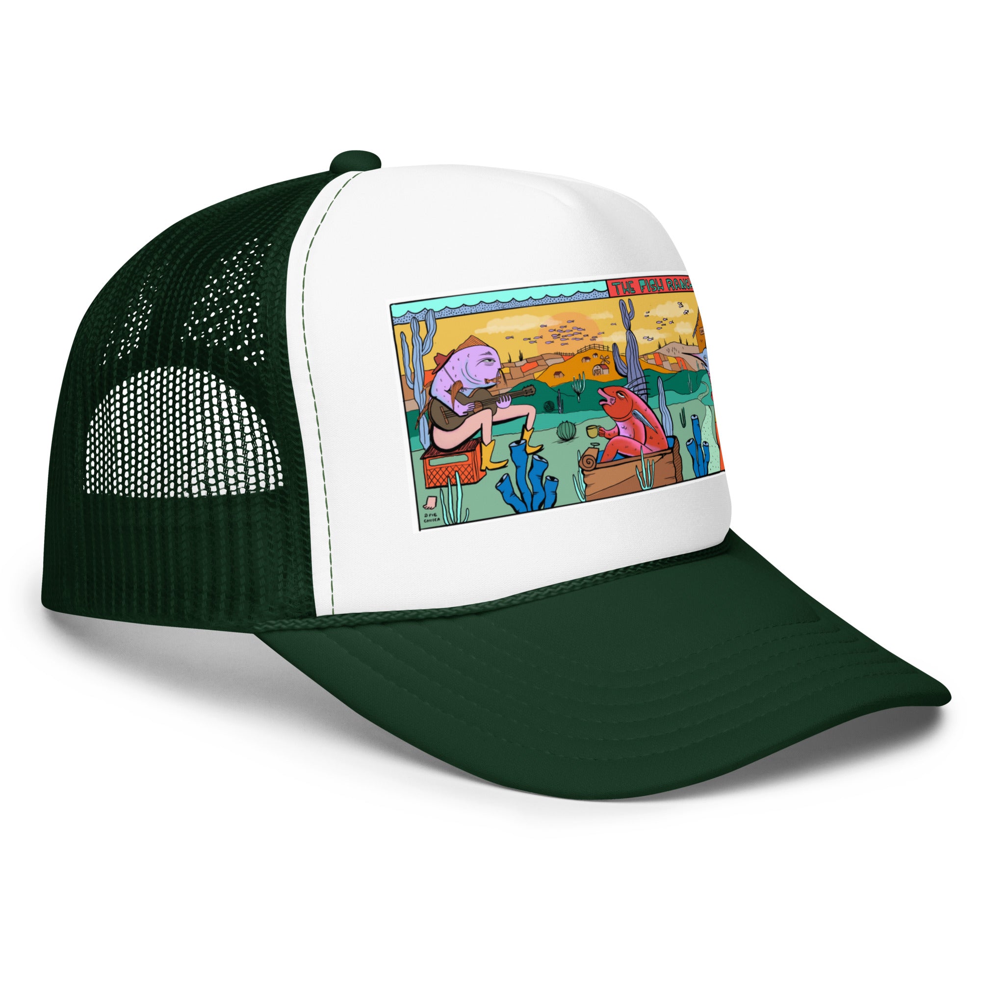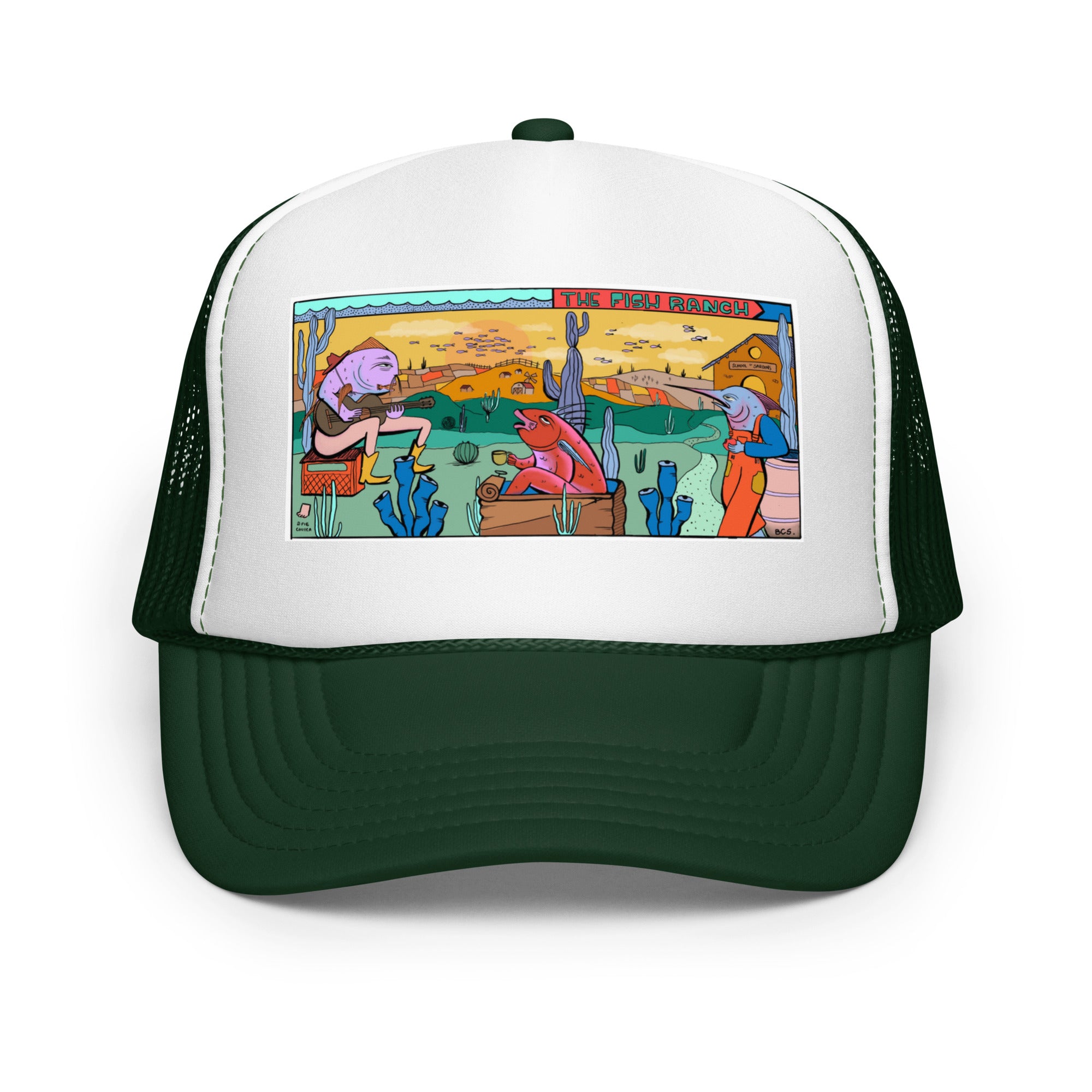 This classic foam trucker features artwork from our shop mural by Mexican artist Renata Patrón, created for The Fish Ranch. The design features our friends, marlin, roosterfish, and dorado.