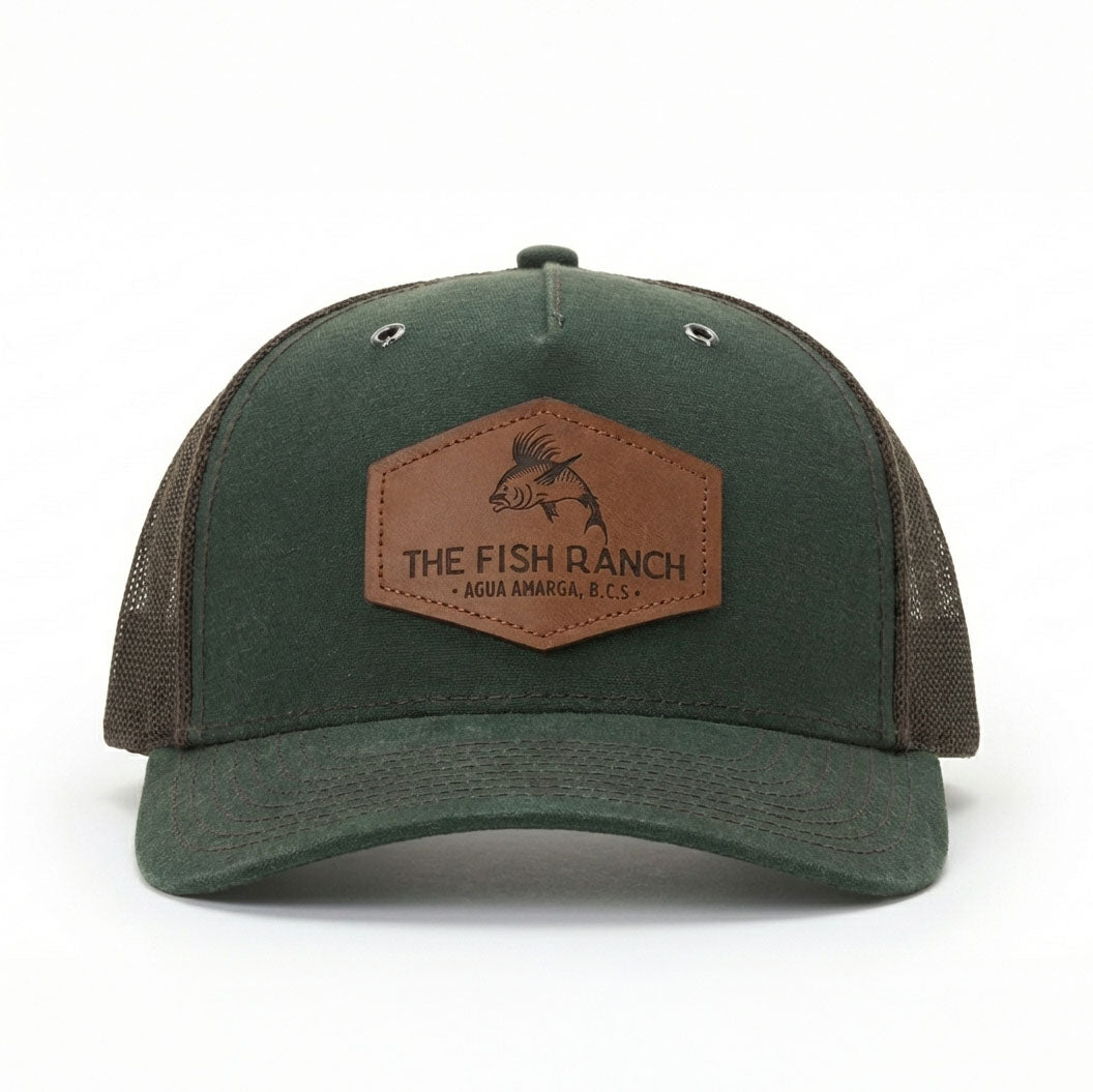 The Richardson Hawthorne 112 blends heritage craftsmanship with modern durability. Made from premium Martexin® waxed cotton, this five-panel cap offers natural water resistance and a rugged, lived-in aesthetic. Durable double-row stitching and anti-corrosion eyelets enhance longevity. Each piece is finished with a genuine leather patch beautifully engraved with the original Fish Ranch logo.