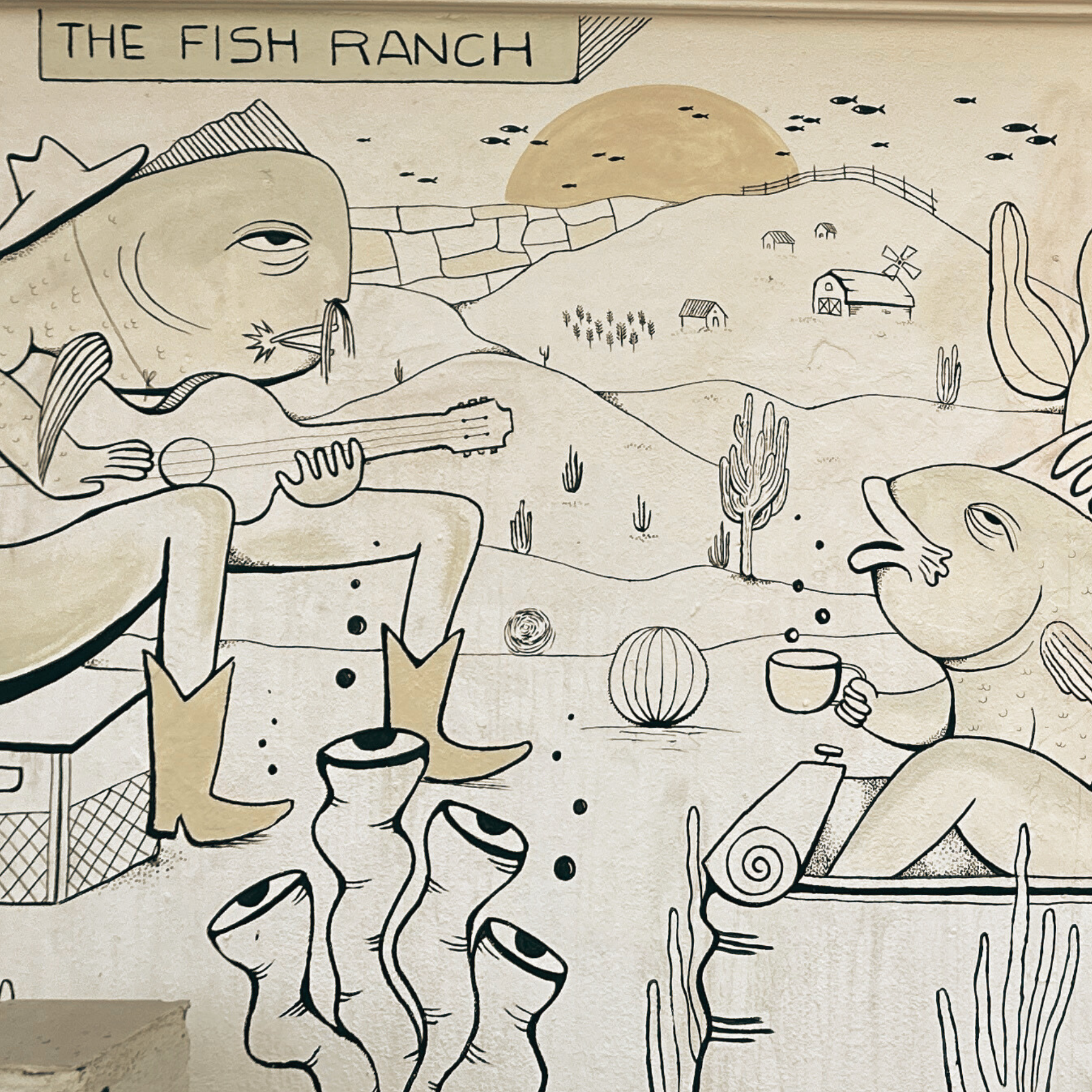 Meet our legendary fly shop mural characters- designed by Renata Patron of @Pie_Chueca. Our Fish Ranch Shop Mural brings a touch of whimsy to just about anywhere.