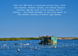 Over 200 miles of connected pristine bays, white sand beaches, dramatic islands, and endless mangrove channels... Mag Bay truly is the Jurassic Park of fishing. Join us in targeting offshore pelagic species, specifically marlin, tuna, and dorado, as well as fishing the beaches and mangroves inshore for roosterfish, snook, corvina, spotted bass, snappers, triggers, golden trevally, grouper, and halibut.